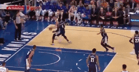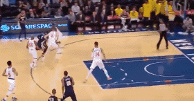 身高與臂展之下已經讓Porzingis擁有無與倫比的籃球天賦,更可氣的是,他的移動速度亦是令人歎為觀止。究竟有多麼優秀呢?切入兩幅動圖。