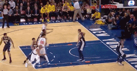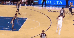 那麼防守呢?Millsap已經大三步擠過Porzingis殺至油漆區,面對籃筐儼然必進之時,波神僅一個墊步騰空而起,波式火箭隆重登場。