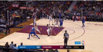 天賦可不僅僅體現在進攻端,防守端Porzingis亦如神之存在,如果球迷不淡忘,還記得昨天那一幕吧,James與Love連導配合下,Rose已經殺至油漆區,結果尷尬了,他頭頂是上賽季小弟Porzingis,結果波神連跳都沒跳一下,直接右手一罩,帽了。