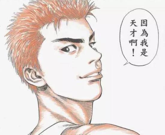 里面有一個紅毛男,叫櫻木花道,從菜鳥到主力,天天把自己是天才掛在嘴邊。