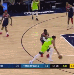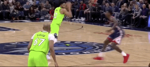 3月10日,明尼蘇達灰狼主場迎戰華盛頓巫師,兩隊比賽正在進行之中,首節Karl-Anthony Towns就上演一記驚天劈扣,隔著Portis完成霸氣的表演。