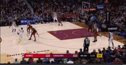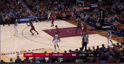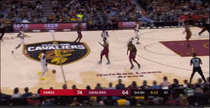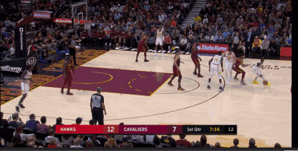 本場比賽開始之後,老鷹的手感就非常不錯,第一節就一度領先騎士兩位數的分差。Schroder在上半場沒怎麼進攻,他更多的是為隊友創造機會。第一節還剩7分多鐘,Schroder在擋拆之後為隊友送出空接上籃的助攻。