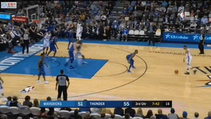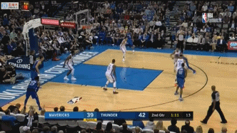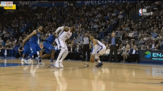 比賽開局小牛反客為主打出4-0小高潮,Westbrook強攻突破造犯規,他掀起了雷霆反撲,個人效率卻相對一般,傳球被斷,上籃打鐵,6分10秒好不容易突到籃下,還被Mejri劈頭蓋臉一個大帽。回防過程中Westbrook臉上明顯有些掛不住,可直到3分鐘後,他才打進本場第一個運動戰進球。