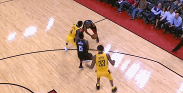 類似的畫面本場比賽不止一次出現,第四節比賽打到6分23秒,Paul一次右路突然加速突破上籃得分,從啟動到完成出手,你就感覺整個過程他隨時都有應變的後招,讓對手想要補防都擔心身後漏人,最終任由他過城門一般輕鬆拿下兩分。
