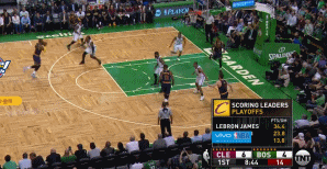 本場比賽,塞爾提克的防守在James面前形同虛設,僅僅上半場他就得到23分,提前兩節讓比賽失去懸念。最終,他24次出手14球命中,貢獻38分9個籃板7次助攻2次抄截,而且只有2次失誤。