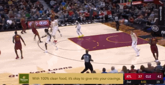 在Korver所投中的6記三分球當中,有4球來自球場左路,2球在右側,全部都是跑出空位(或有隊友掩護)之後的直接出手,其中最令人讚嘆「這手感也太好了」的一球,發生在第二節進行到5分55秒時: