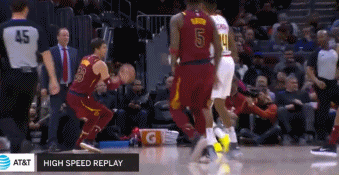 當時JR Smith左側15度角接球,吸引防守後順勢又將球分給底角的Korver。Korver接到球的一瞬間,發現丹尼斯-施羅德馬上補防到位,故意等了一下,然後起跳出手,顯然是想騙個犯規。