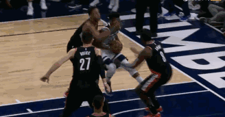 第四節最後還剩1分鐘,灰狼落後1分,Butler在進攻端造成C.J. McCollum的犯規,他隨後2罰全中,灰狼成功反超。但CJ緊接著回了一個兩分跳投。