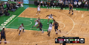 騎士也在進攻端以他為核心,打得極為高效。4分47秒,他突進籃下造成Jerebko犯規,還強行打進上籃;一分鐘後,他又抄截了Jerebko,隨後輕鬆被打對手,一個轉身過人直驅籃下上演暴扣,讓波士頓球迷都全部偃旗息鼓。