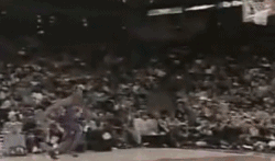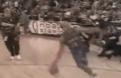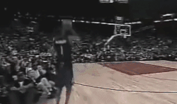 Carter隨後出場,他在幾乎沒有助跑的情況下完成了一記反身轉體大風車暴扣。