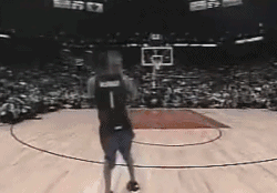 然而此時的McGrady並沒有保存實力,而是選擇了一個高難度的空接轉體摺疊暴扣,看的一旁的Duncan滿臉驚訝。