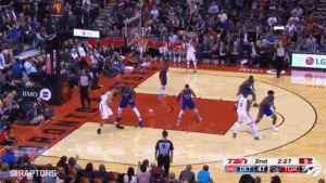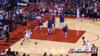 第二節進行過半,一次進攻中暴龍首發中鋒Valančiūnas在遠處搶到前場籃板,停穩球後發現自己已站在三分線外。此時進攻時間還有十幾秒,Valančiūnas卻沒有再交給隊友組織進攻的意思,而是在三分線外瞄了瞄籃準備出手。