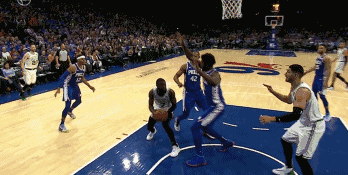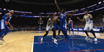 Brown籃下想要強攻,Embiid上前補防,沒想到的是Brown的肘子打到了Embiid的臉上,Embiid立馬倒地。雖然Brown不是故意肘擊,但是裁判立馬吹罰了Brown的進攻犯規,這也是Brown本場比賽第五次犯規。