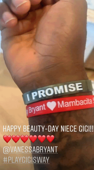 詹姆斯更新了社交媒體,他曬出了自己戴上的紅色手環,這是響應「紅色手環」活動,活動由瓦妮莎發起,所有的收入將捐給Mamba&Mambacita基金會。同時詹姆斯還為Gianna送上了祝福:「生日快樂我的侄女GIGI!!」