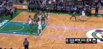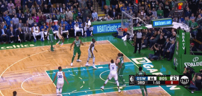 勇士的每一個轉移球,每一步移動都會被遭到防守球員貼身到肉的「照顧」,每一次突入禁區,都是多人圍堵,每一次投籃出手,身前總會有快速跑動干擾的身影,就像前文所提到的那樣,身披綠衫的球員看上去根本不知疲倦。當比賽被拖到這個階段,就已經進入塞爾提克的節奏了,這是最「東區」的籃球角鬥場。