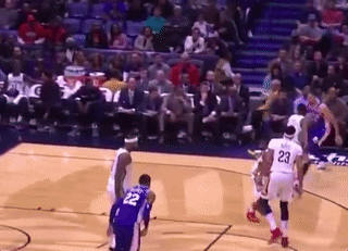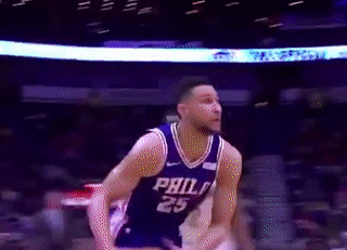 上半場比賽中,Simmons利用加速過掉了防守球員,Cousins伺機準備送給對手一個封蓋。然而Simmons空中滑翔劈扣,讓Cousins的補防變得形同虛設。