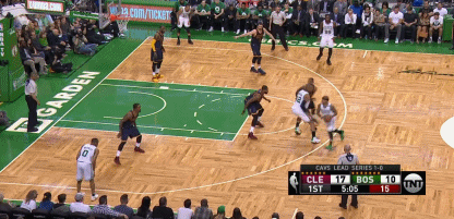 騎士用了三種不同的方式去挑逗塞爾提克的聯防,一會守1-2-2,一會守2-3,但無一例外,全被見招拆招,一波15比2 ,塞爾提克就此斷了念想。