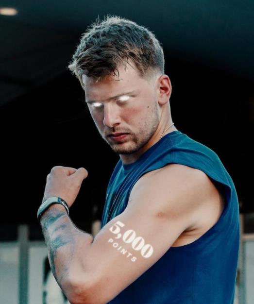 獨行俠官方還曬出Doncic兩眼發光的特效照,Doncic手臂上印著“5000分”的字樣。最後再次恭喜Doncic,年僅22歲已經成為獨行俠絕對核心,前途不可估量。