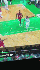 當時距離比賽結束還剩11秒,塞爾提克發邊線球Marcus Smart背身持球對位James Harden。仔細放大鏡頭可以明顯看出,此時Smart的雙腳一直在不停的移動,軸心腳挪動過程中才將球傳給了空切內線的塔圖姆,後者得以順利完成灌籃得分。