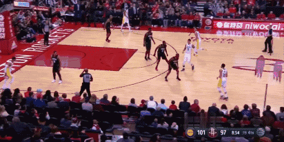 以火箭跟湖人的比賽回合為例。雖然火箭在某些時間段打出了壓迫性極高的防守,但縱觀58分鐘的比賽時間,「鬆懈與愣神>專注防守」仍是你能看到的主流場景。
