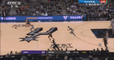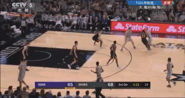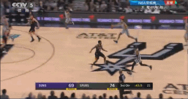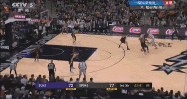 還剩1分多鐘,Manu使出了他的招牌式突破,而且他幾乎是突破了太陽的整個防線,並在籃下完成了一個飄逸的反手上籃。完成這個上籃之後,Manu還伸手向裁判示意應該是2+1機會。