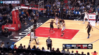 就如上面兩張圖所展示的那樣,Anthony在雷霆的進攻體系里,很好的起到了空間牽制的作用,他會經常埋伏在弱側三分線外等待接球投籃的機會,並且有效地完成一些守轉攻當中的追身三分。