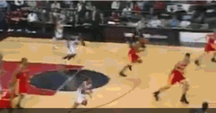 Stein這一球不禁勾起了我們記憶,當年火箭對陣拓荒者,姚明也曾經做過這樣的動作,當時火箭斷掉拓荒者的球後,直接傳給了跑前場的姚明,姚明接球後直接一個背後運球躲過了防守球員的抄截,隨後一條龍爆扣得手。