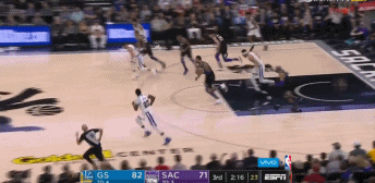 第三節還有2分10秒國王切掉勇士的傳球後,Stein一個大中鋒自己運球過半場,勇士球員可能做夢也沒有想到Stein能夠自己一條龍就完成進攻了,他們還不緊不慢的在退防。只見Stein突然一個加速準備衝擊籃下,格林是距離Stein最近的一個球員,一般大個子運球重心高,不穩,所以格林想直接去把這個斷下;這時候只見Stein一個瀟灑的背後運球直接躲過格林的抄球,隨後直接起步灌籃得手,鎖定今日五佳球。