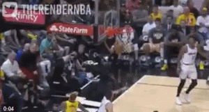當時雙方正在爭搶籃板,Dragic高高跳起,準備將籃板摘下,然而小Thomas卻拽著Dragic的球褲。從動圖中可以看出,當時小Thomas似乎是腳底一滑,重心不穩,而他死命拽著Dragic的球褲,應該是為了防止自己摔倒。不過尷尬的一幕出現了,Dragic黑色的底褲被鏡頭巧妙的捕捉到。
