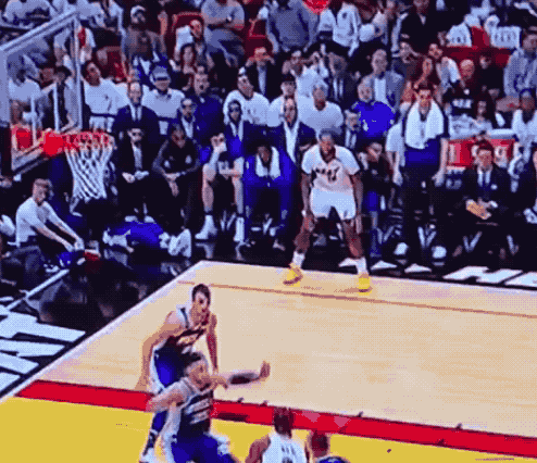4月20日,東區季後賽首輪第3場,熱火主場迎戰76人。第三節,熱火大前鋒James Johnson在76人的板凳前投進了一個很囂張的三分球。
