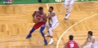 下一個回合,綠軍失誤,76人得到最後一次進攻機會。又是Smart錯位防守大帝,這次大帝以牙還牙,在出手三分時不知是否有意做出抬腿動作,踢到了Smart的關鍵部位。