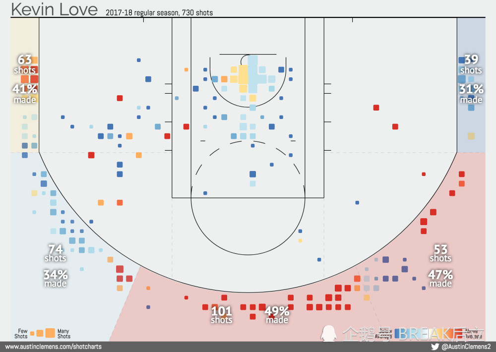 根據《Synergy Basketball》的統計,在上賽季每場球權使用超過12%的145名球員中,Love的進攻效率高居第10。而每回合平均得分(points per possession,即PPP)方面,Love的數據是驚人的1.11,這個數據是聯盟最頂尖的之一,比他2016年奪冠時期的隊友詹姆斯和厄文都要高,也比新科MVP哈登和聯盟其他一流得分手要高。