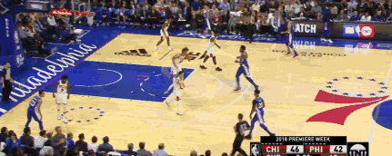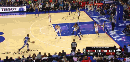 第四節還剩8分多鐘,Fultz在右側45度突然選擇三分出手,但是公牛隊的Zach LaVine已經撲過去防守,但是Fultz的三分空心入網。Fultz的這個三分球徹底點燃了主場球迷的熱情。要知道,這是Fultz職業生涯命中的第一個三分球,而Ben Simmons還沒有進過一個三分。