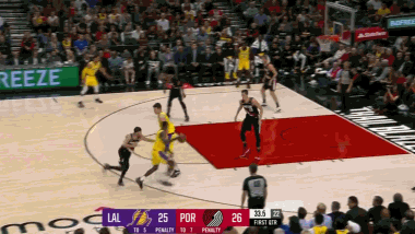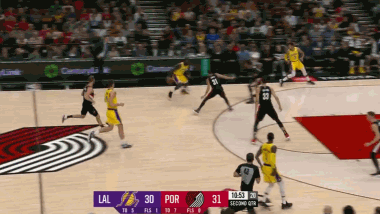 第二節還剩不到11分鐘,Stephenson從正面往籃下突破,當看到拓荒者在籃下的防守比較密集時,Stephenson突然扭頭並把球往外線傳,但是這一傳直接把球交到對方的手里,並讓拓荒者打起反攻。