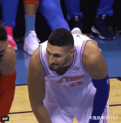 比賽過程中,Adams一直各種「挑釁」Kanter,甚至教唆尼克主帥Fizdale把Kanter換下去,理由是後者防守太爛了。