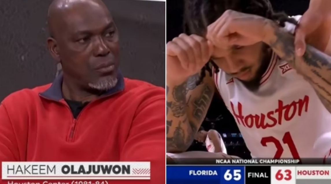 4月8日,NCAA瘋狂三月總冠軍賽,休士頓大學對陣佛羅里達大學,休士頓大學傳奇名宿歐拉朱旺與馬刺核心溫班亞瑪到...