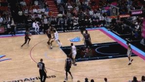 比赛过程中,韦德上演风骚转身上篮,迎着防守球员将球高抛砸板入筐。