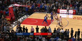 而在之後,快艇大腿Louis Williams挺身而出,穩穩命中三分,快艇113-112領先,比賽的時間也僅剩1.2秒;