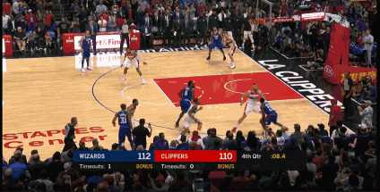 暫停結束後,巫師發動進攻,Bradley Beal接球突至內線,打進2+1,順勢將比分反超;