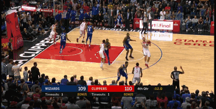 重新開始後,巫師發球找到了中鋒Marcin Gortat,後者接球出手三分沒中,最終,巫師客場112-113惜敗。全場比賽,Louis Williams砍下35分8助攻,Austin Rivers 16分7助攻,Beal拿下了25分。