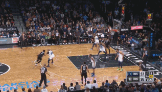 當時距離比賽結束還剩12秒,Dinwiddie接到隊友傳球之後,頂著Taj Gibson的防守突破到灰狼的防守禁區。在籃網隊進攻時間即將耗盡時,Dinwiddie起身拔蔥投射,皮球劃過一道完美弧線,直接墜入網窩。