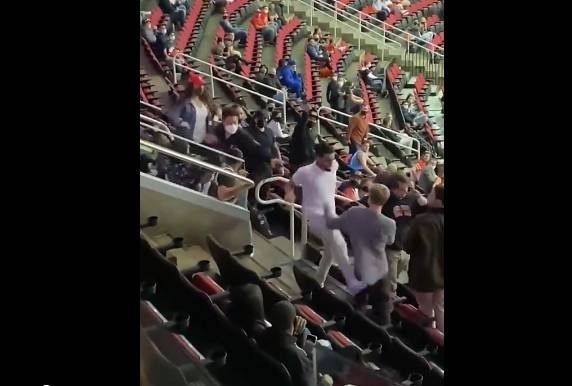 但客觀的說Wall領銜的這支火箭無法跟哈登之前帶領的火箭相比,他們可能夠團結團隊氛圍更好,但天賦一般般,球隊不可能走很遠。另外一件有趣的事就是,這場比賽是火箭主場,在豐田中心比賽間隙,觀眾席上爆發了一場群毆,雙方多人參與,打了很久才被勸開。