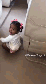 看到小女兒,Kobe瞬間變成慈父,而且時不時地逗小女兒玩,而Bianca 故意躲著Kobe。
