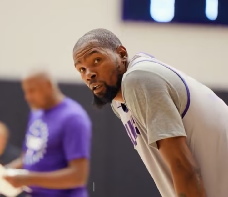 太陽訓練營第一天,太陽眾將集體折返跑,眾將積極訓練,從太陽曬出的訓練集錦可以看出,36歲杜蘭特累得大汗淋漓,汗水滴在地板上;訓練期間,杜蘭特在反擊中劈扣,助攻布克(Devin Booker)命中三分,防守時被瓊斯迎面命中三分球。