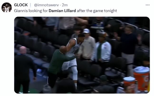 公鹿球迷嘲諷:這邊比賽結束後字母哥一定會去尋求里拉德(暗示里拉德隱身)。