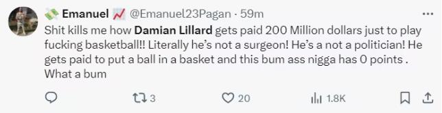 公鹿球迷:里拉德是怎麼拿2億合同的?他打得像狗屎一樣,他是一個騙子,是一個混蛋,他只是來賺錢的,這個沒人要的流浪漢。
