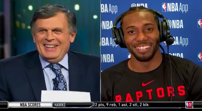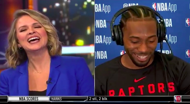 上一場暴龍不敵公鹿的比賽中,Leonard選擇輪休,因此在本賽季他出戰的比賽中,至今還沒有遭遇過失敗。今天再次大勝東區勁旅76人,讓Leonard興奮不已。比賽之後美國媒體連線採訪過程中,他戴上耳機接受採訪時,一度哈哈大笑,完全放下了之前高冷的態度。