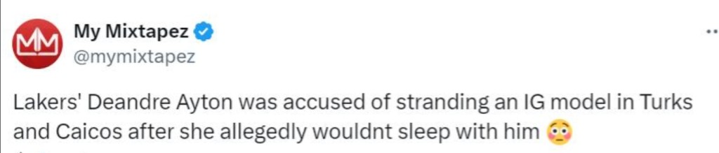 7月29日,27歲的中鋒德安德烈-艾頓(DeAndre Ayton)近日剛與湖人隊簽約,卻陷入了一場爭議風波。這距離他開啟洛杉磯的新篇章僅過去幾週時間。一位IG網紅特指控艾頓在土克凱可群島因她拒絕其性暗示而將她拋棄。