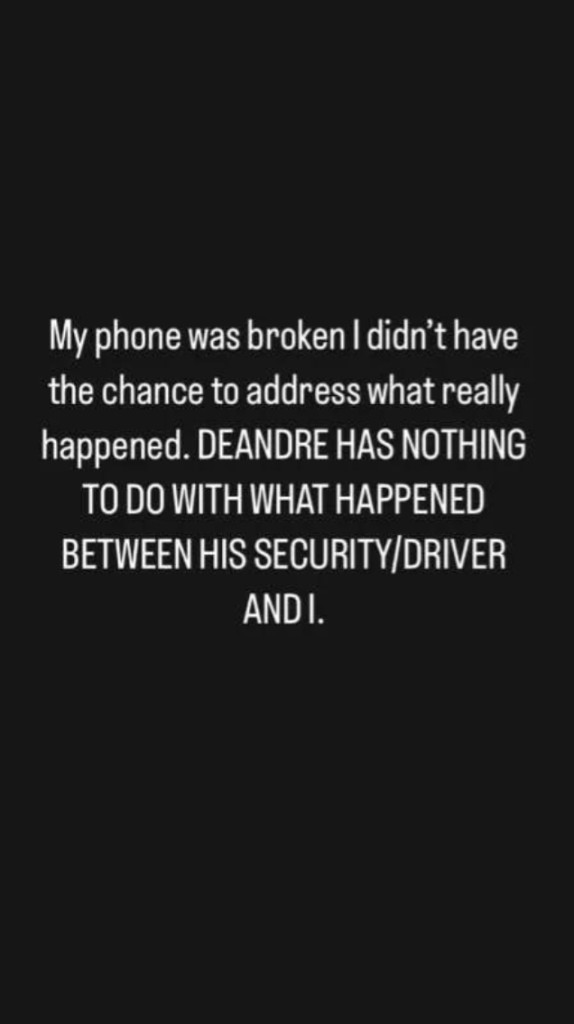 如今,這位網紅再次更新社媒,解釋道:「我的手機壞了,沒機會說明真實情況。這是我與艾頓的安保 / 司機之間發生的事,艾頓與這件事毫無關係。」