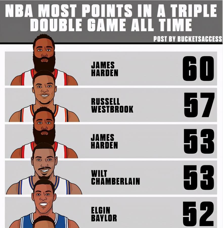 放眼NBA歷史,單場砍下50+大三元有多難?僅有四位大神做到,詹皇也落榜!